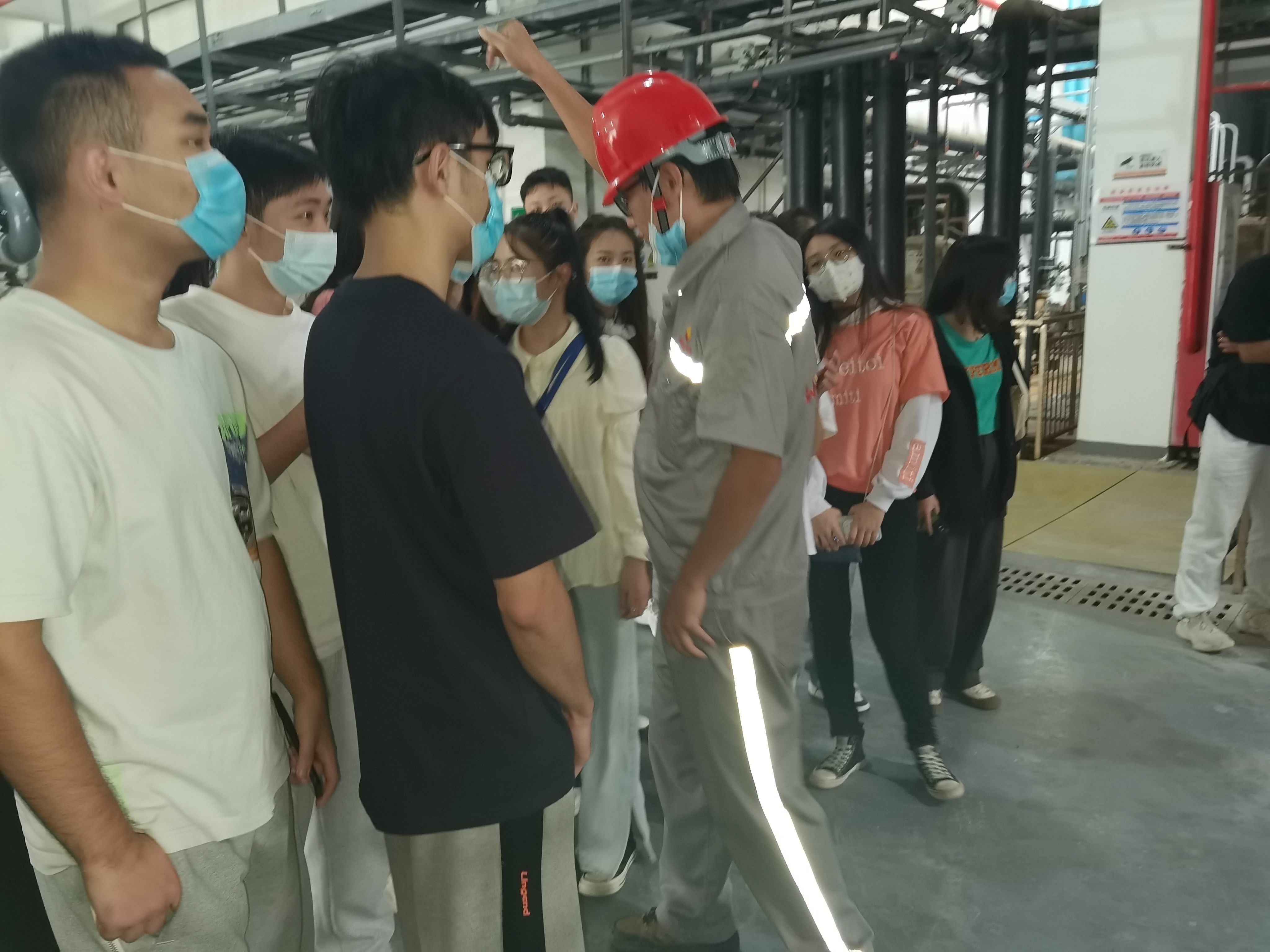 荔枝沟污水处理厂安排技术骨干人员作为校外指导教师,带领同学们参观了AAO污水处理工艺,详细讲解原理及工段效用,并回答同学们的提问。