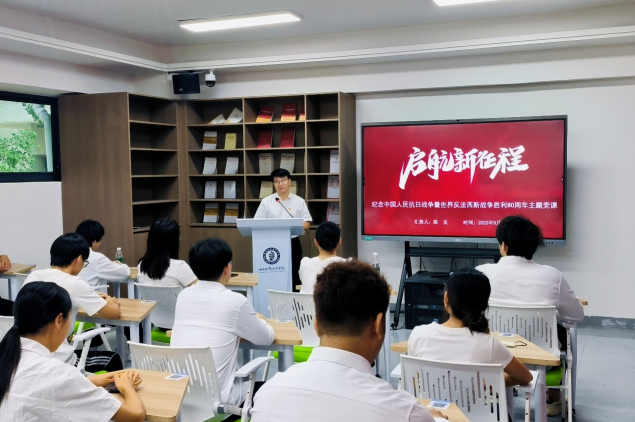 9月3日,beats365组织全院师生收看纪念中国人民抗日战争暨世界反法西斯战争胜利80周年大会直播盛况。随后,公司党委陈友副书记结合这一盛事,在员工一站式红帆自习室为员工党员和师生代表讲授了一堂生动的党课。