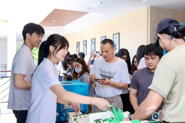 在生物多样性环保科普图片展区,公司学子薛世婕、黄天成,生动的向参与者讲解生物多样性精美的画面,生动展现海南多样的生物物种和生态景观,吸引众多参与者驻足观看、学习。