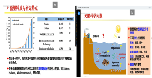 本次讲座,李锋民教授首先向大家介绍了海洋微塑料的研究背景,指出近十年微塑料成为研究热点,并就微塑料近岸时空分布特征,对海洋生物的影响及“微塑料去哪儿了”等关键科学问题进行了介绍。随后介绍了近些年其课题组关于荧光微塑料的消解、微塑料在青岛近岸及南黄海,东海的时空分布和生态毒理效应的研究,最后展示了近年来取得的主要的研究成果。报告过程中,李锋民教授和公司师生积极互动交流,对微塑料的研究细节和实验中遇到的问题进行了热烈讨论。