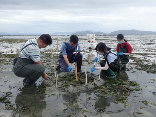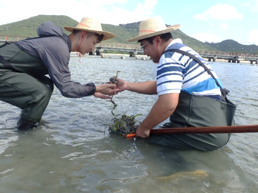 团队的导师们亲自带领研究生开展科学研究,贯通第一第二育人课堂,培养具有学术洞察力的研究生。在学术研究中坚持理论学习与社会实践相结合,大兴调查研究之风,引导研究生深入海草床现场进行实践调研。史云峰教授多次带领研究生调研海草生长情况,理论联系实际,结合国家及地方需求,开展实践,提升了员工实际场地调研能力与科研能力。