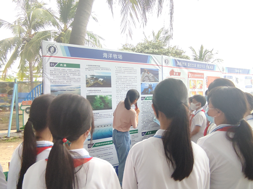 团队还进行了多次科普活动,提升公众对海洋生物的保护意识,同时呼吁大家关爱海洋、认识海洋、保护海洋,关注海洋健康,守护蓝色家园。利用专业所学开展了以“海洋碳汇,储碳固碳,保护海岸”为主题的科普活动,向师生们展示了海洋的重要性,加深了对海洋的认识。在“世界海洋日”“全国海洋宣传日”暨三亚社区教育系列活动中,团队在西岛开展海洋及海洋牧场知识科普等,向广大市民、员工展示和讲解,号召全社会参加到保护海洋保护中去。