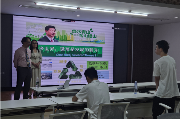 在交流环节,现场与线上参会的师生就微藻在未来的应用前景及价值等议题与何教授展开了更深层面的探讨。经过驯化后的微藻可高效产生柴油、在农业上有鱼菜共生模式、可为极地等极端环境提供食物,并含有极高营养价值,有着丰富的DHA等抗氧化成分,种种优势带来广阔前景。何教授还分析了所驯化微藻的生理特点,发现其光自养特性:产生氧气是同体积树木的10倍,固碳能力超过17倍,将成为未来可持续发展环保路上的新秀。